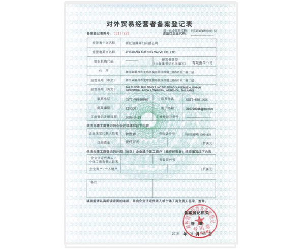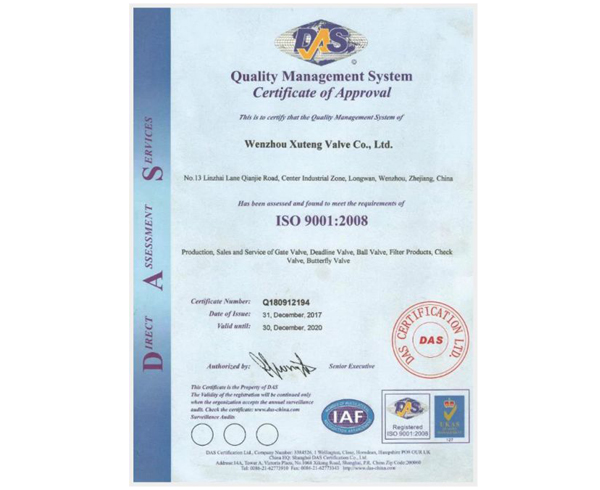 Honorary Qualification Xuteng Valve Group Co., Ltd. specializes in the control of fluid valve products, scientific research and design, manufacturing and sales, technical exchanges, import and export trade in one entity manufacturing enterprises. Founded in 2006, the company is located in Wenzhou Binhai Economic and Technological Development Zone, Zhejiang Province. Xuteng Valve has always relied on good product quality; science and technology for innovation; new product development and patents; the introduction of the United States, Germany, Japan and other world-class advanced technology and products, by absorbing, learning from and improving the manufacturing technology of products, to form high-end products with independent core, to close to the world's advanced production. The distance between products is recognized and trusted by customers in domestic and international markets. At the same time, the company passes the quality system such as TS (Manufacturing License for Pressure Pipeline Components), ISO 9001 (International Quality Management System), CE (European Union Safety Identification) and the certification system required by the special industry. High quality management, advanced production technology; excellent service to provide quality assurance, with good reputation in return for the majority of users of Xuteng valve love. The company has sophisticated machinery and equipment, advanced production technology, complete testing equipment, high-quality staff and a new pragmatic, advanced quality management system to organize production and sales. Products have formed more than ten series and more than one thousand specifications. Products are widely used in chemical industry, natural gas, mining, metallurgy, medicine, urban construction and other industries.
